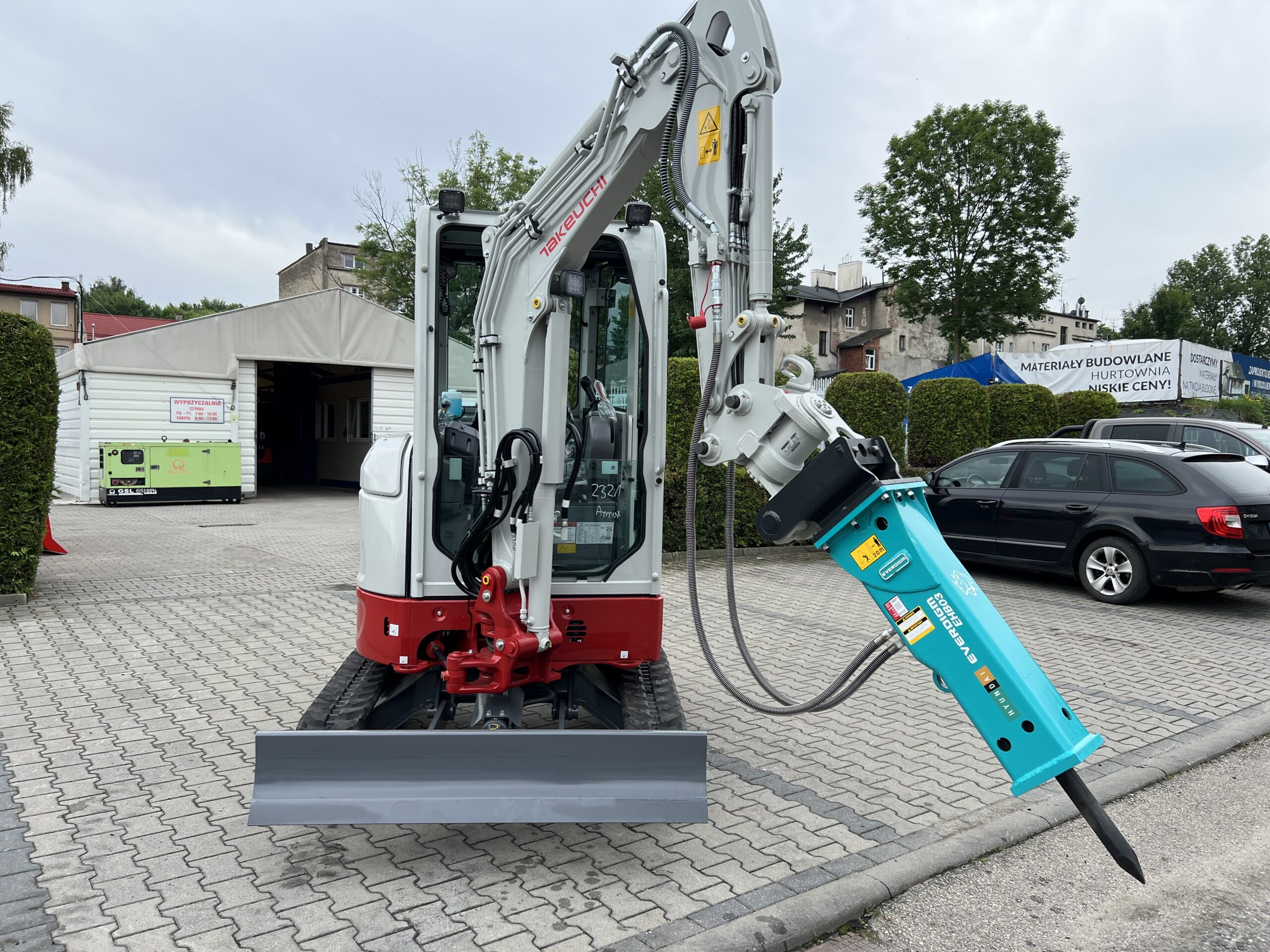 - EHB02 (121 kg) – młot dla koparek o masie 1–3 ton. Idealny do prac instalacyjnych i remontowych na niewielkim sprzęcie.