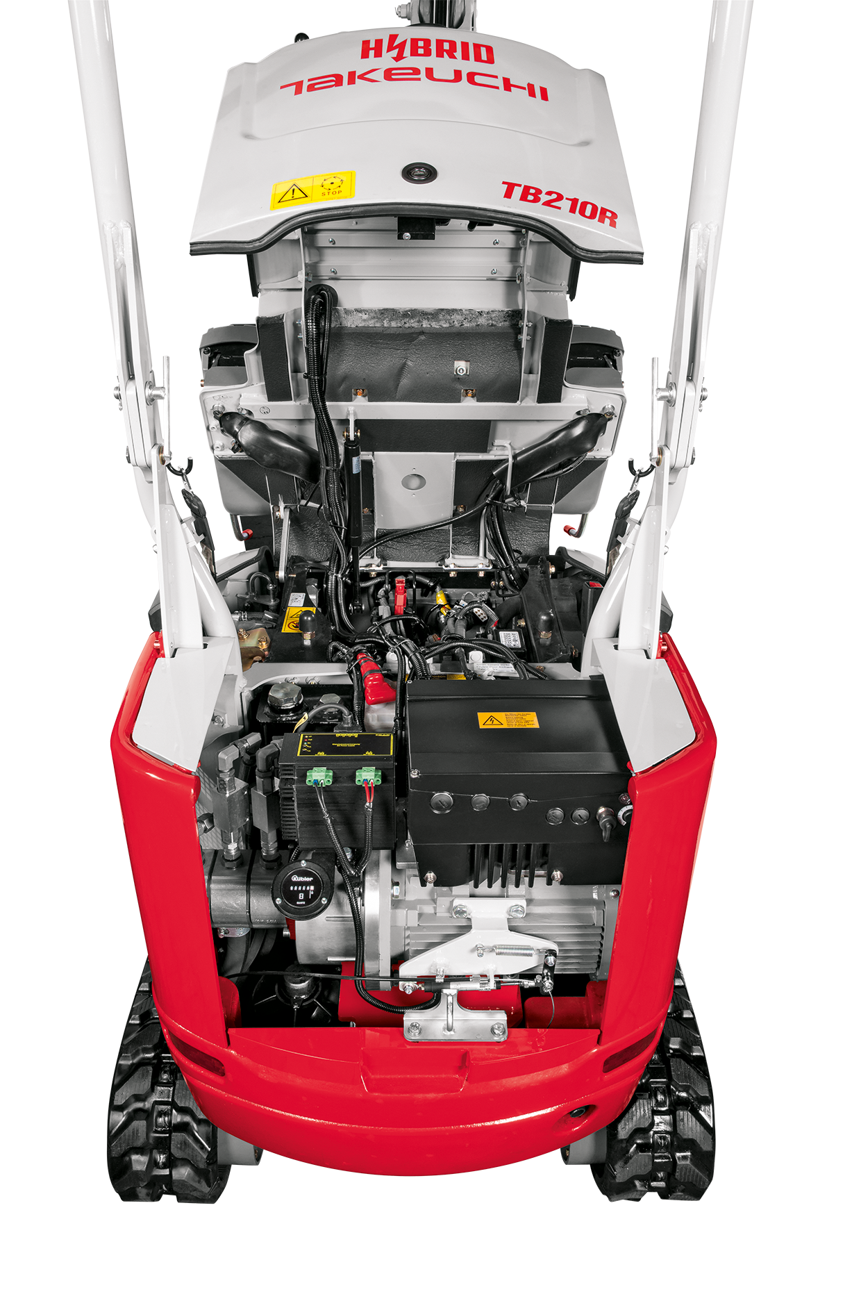 Nowa minikoparka TAKEUCHI TB 210 HYBRYD jest zasilana przez dwa rodzaje napędu: standardowy silnik Diesla oraz elektryczny silnik trójfazowy.